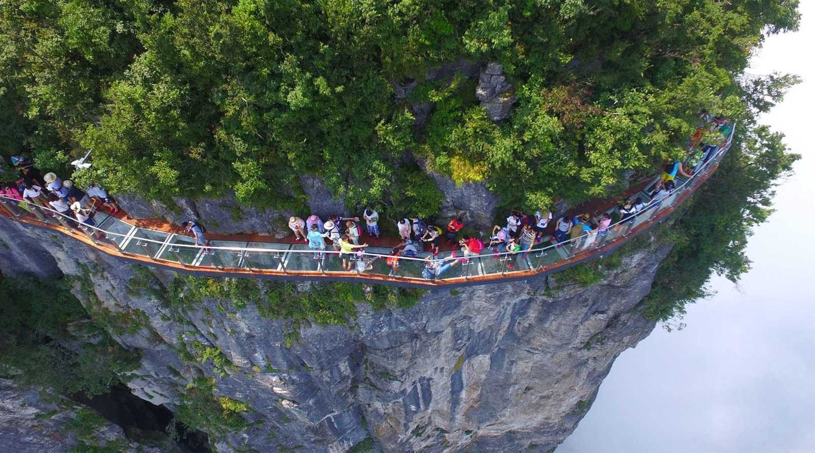 - Trải nghiệm Sàn Đạo Kính (Cầu kính - con đường gác kính trên vách đá), con đường làm từ những tấm kính cường lực trong suốt, dày hơn 6cm. Con đường men theo vách núi dựng đứng, Skywalk đã trở thành một trong những điểm thu hút khách du lịch hấp dẫn nhất tại Trương Gia Giới.